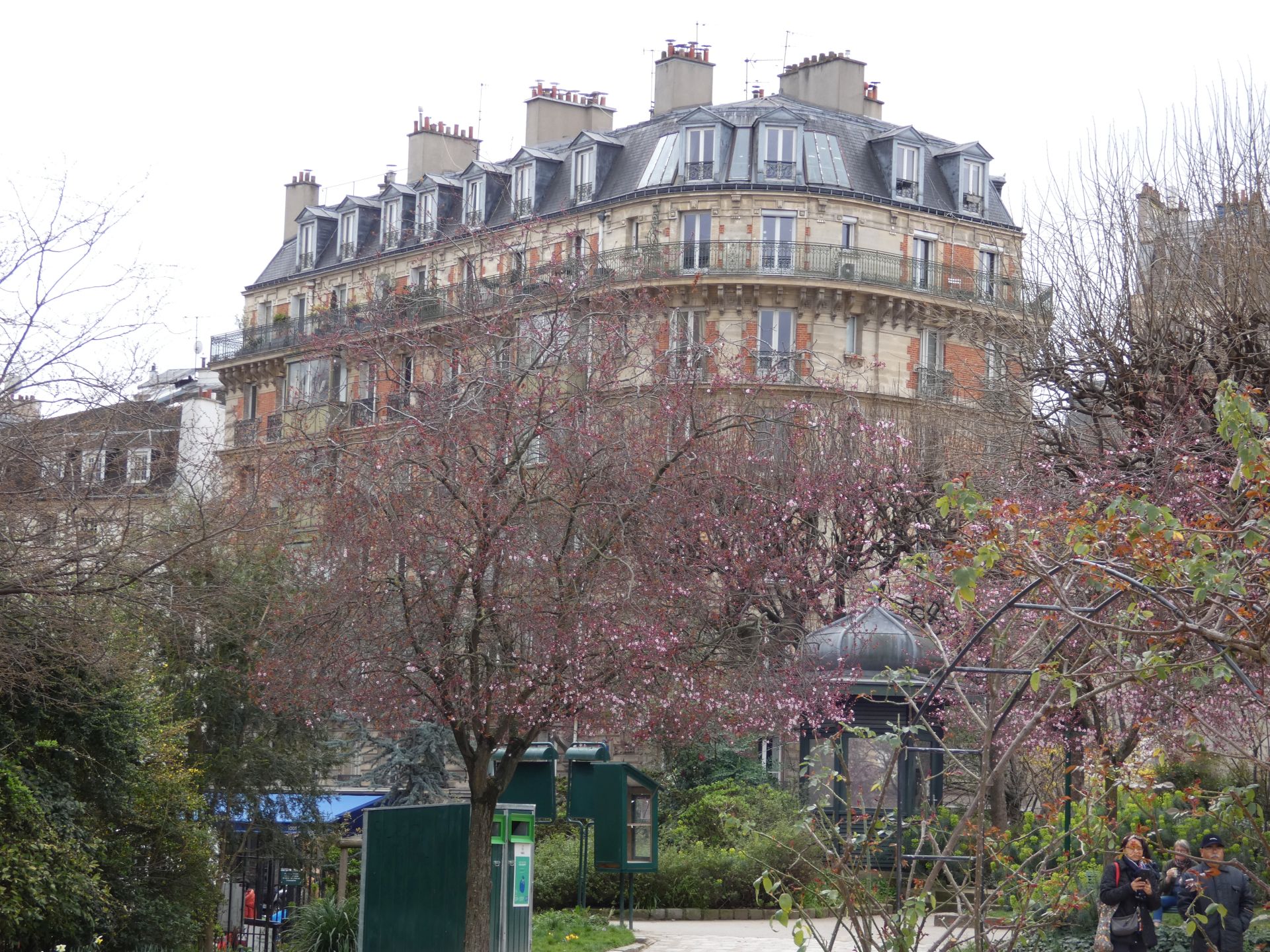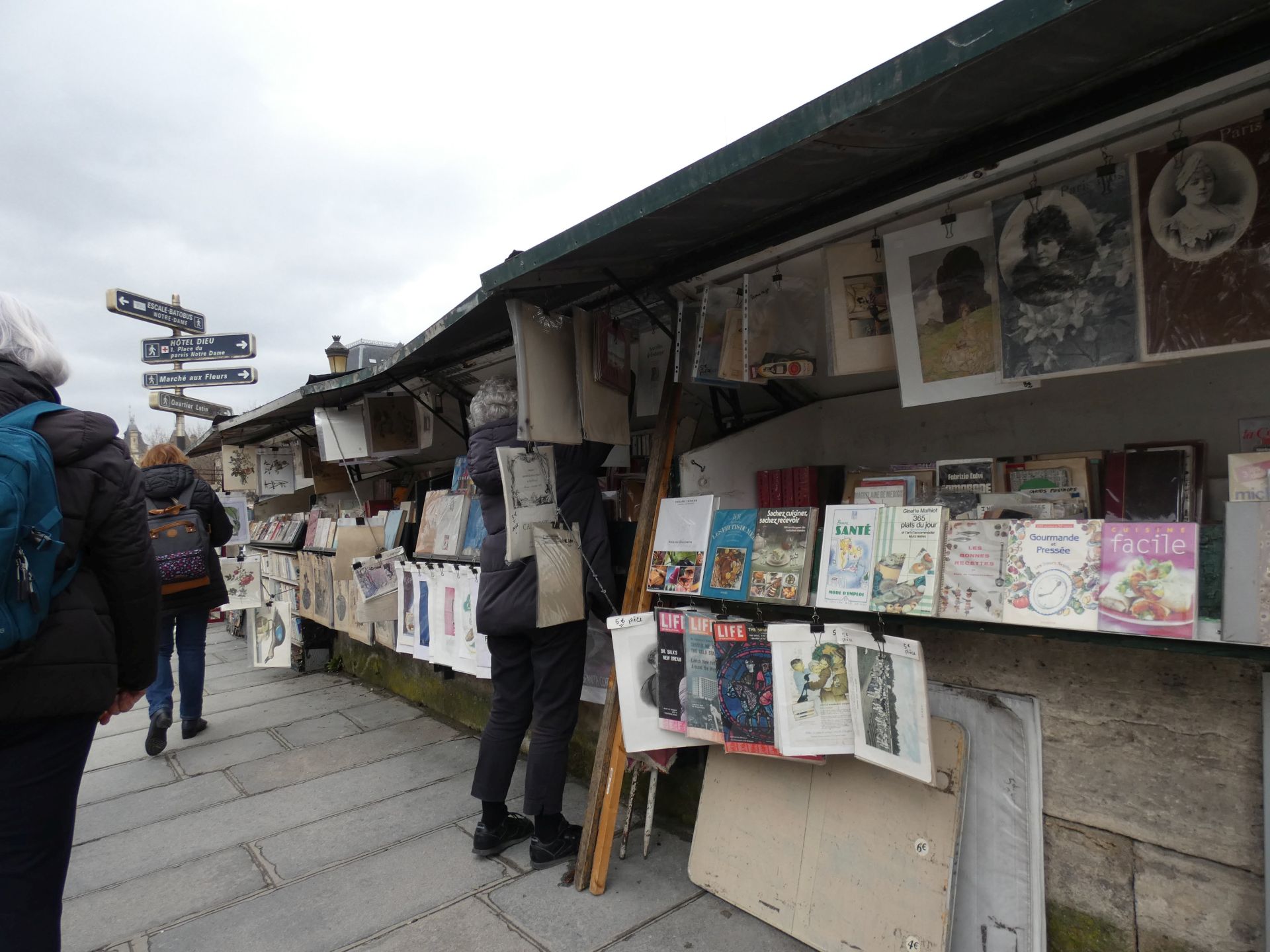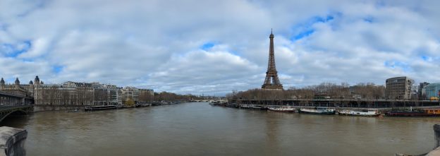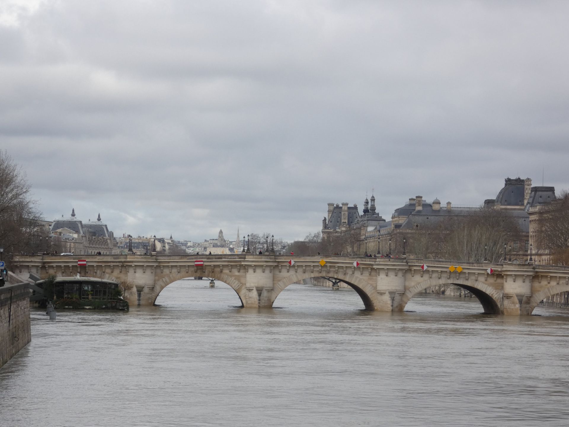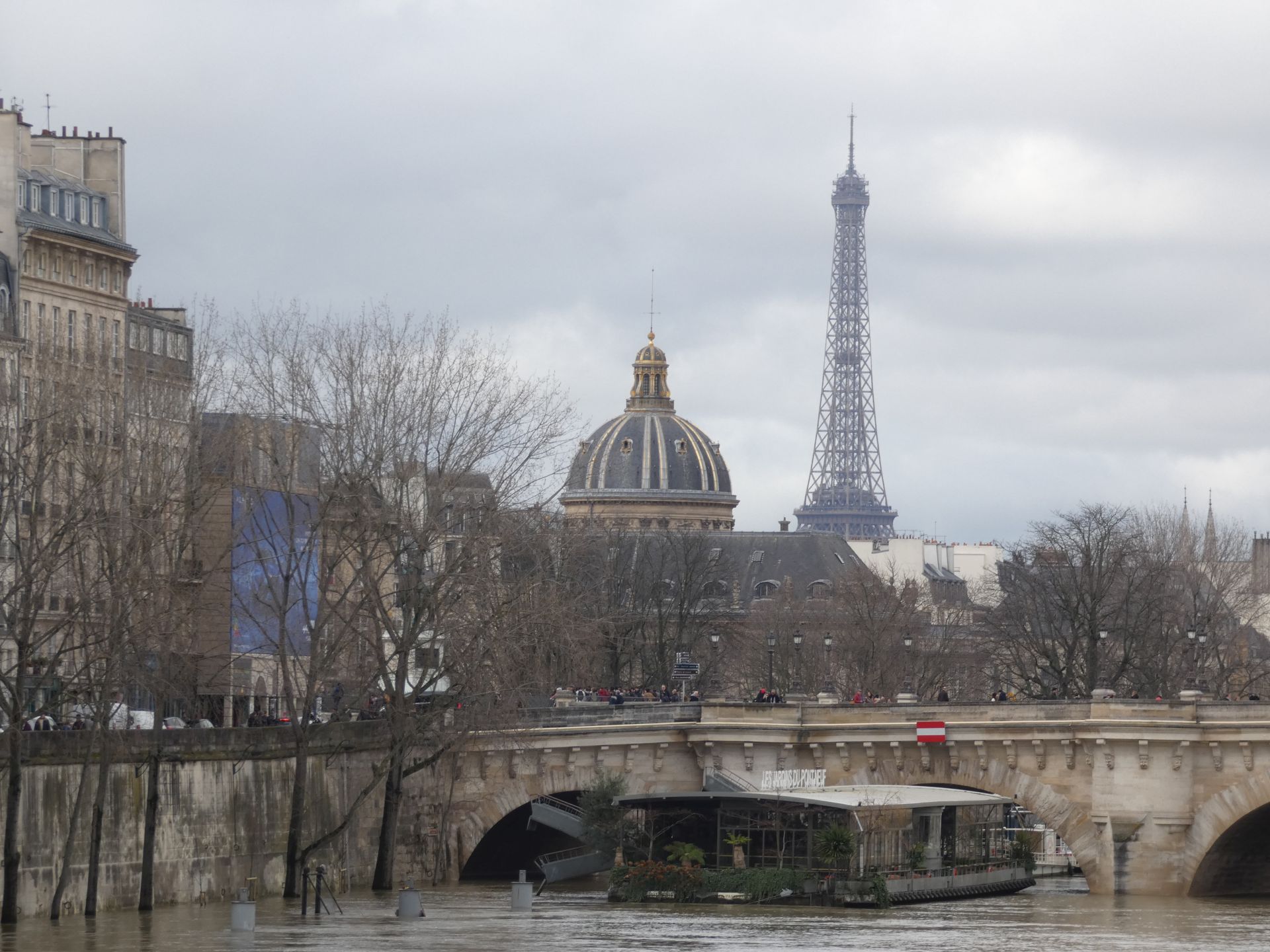 En verder is Parijs natuurlijk een bijzondere stad met bezienswaardige straatjes, mooie pleintjes, verrassende doorkijkjes, een tot langwerpig park omgekatte oude spoorlijn, leuke winkeltjes en markten, de protserige Champs Elysées. En een rivier waarop we best een rondvaart hadden willen maken, maar door recente regenval stond het water zo hoog dat de rondvaartboten niet onder de bruggen pasten…